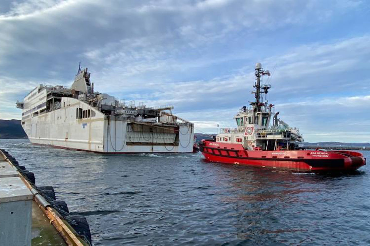 Niedokończony, ale w dość wysokim stopniu już wyposażony, statek został wyholowany ze stoczni we Flensburgu 25 października 2020 roku. Następnego dnia stocznia Fosen Yard w Rissa koło Trondheim oficjalnie poinformowała, że otrzymała od grupy Siem zlecenie na dokończenie budowy statku. Statek dotarł do stoczni Fosen 2 listopada.