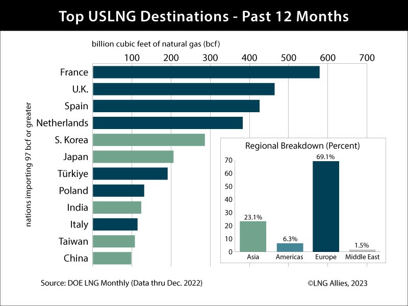 Czołowi importerzy amerykańskiego LNG w 2022 r.