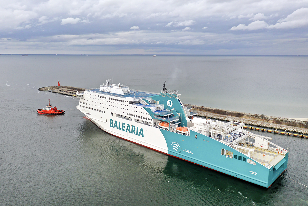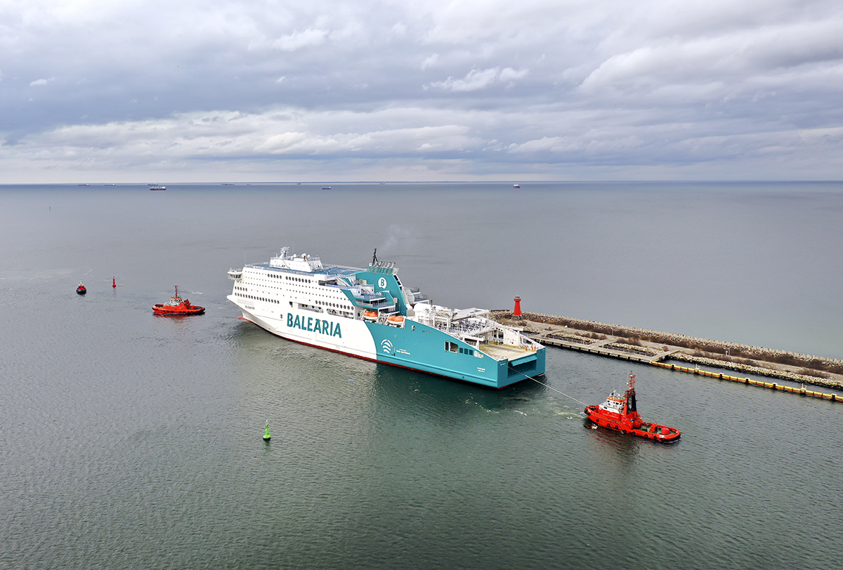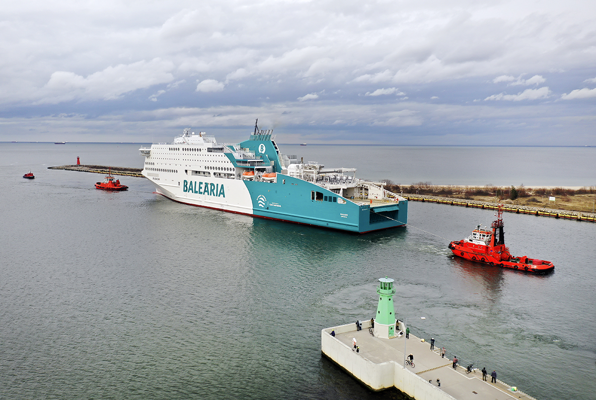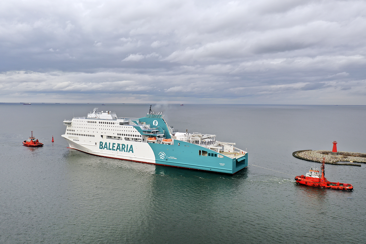 Nowoczesny prom pasażersko-samochodowy Rusadir (ex. Honfleur), wyczarterowany przez hiszpańskiego armatora Baleària opuścił dziś stocznię w Gdyni i zacumował na kilka dni w Gdańsku celem napełnienia zbiornika statku skroplonym gazem ziemnym (LNG). Już w najbliższą sobotę wypłynie do Malagi.