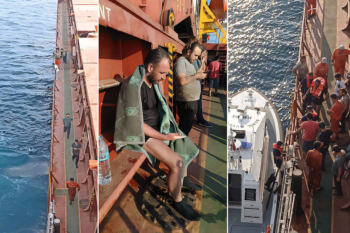 Powielane w licznych mediach tureckich nagranie video wykonane przez jednego z członków załogi ratującej Ukraińca pokazuje, jak starszy oficer ze statku MSC został wciągnięty na pokład przez załogę.
