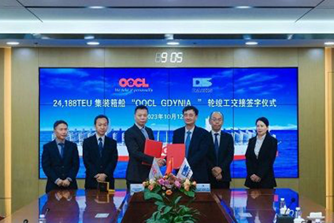 Uroczystość nadania imienia OOCL Gdynia statkowi o numerze budowy DE094 miała miejce w stoczni Dalian COSCO KHI Ship Engineering Co. Ltd. (DACKS), która w części należy do japońskiego koncernu Kawasaki Heavy Industries. Jest to szósty z zamówionych dwunastu ekologicznych statków klasy 24 000 TEU zamówionych przez chińską firmę w 2020 roku. Według niektórych źródeł, to zarazem trzeci z bliźniaczych statków po OOCL Piraeus i OOCL Felixstowe przekazanych w maju i sierpniu tego roku.