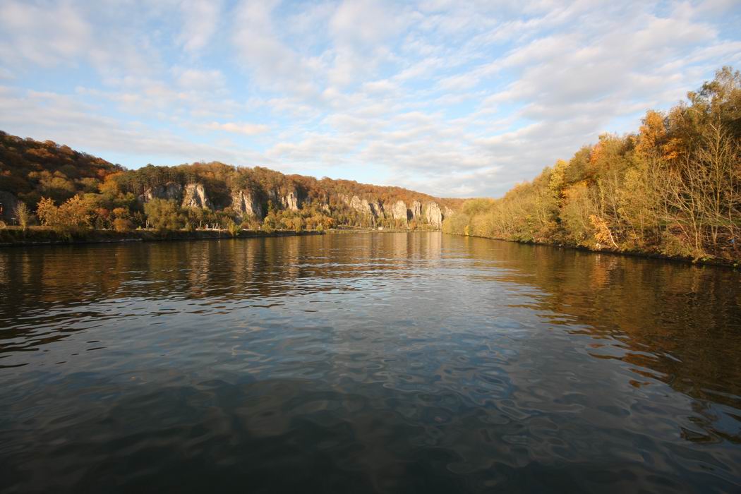 Rzeka „przemysłowa”. Ruch na niej olbrzymi i to ponad stumetrowych barek. Prąd silny, przy ostrogach (chroniących brzegi rzeki), nawet bardzo silny. Jeśli wysiądzie silnik, łódka straci sterowność, wyniesie ją na środek prosto „pod koła” barek, a tu woda zimna, a do domu daleko…