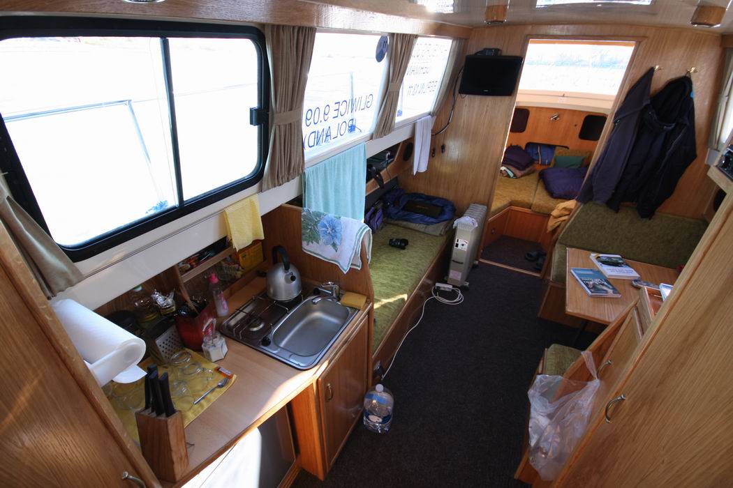 Zrobiło się zimno, w nocy nawet ok. 4 stopni na minusie. Już po sezonie i o mariny, gdzie można by się podłączyć do prądu (co oznacza ciepło) oraz wody, coraz trudniej. Ogrzewanie na łódce wprawdzie jest, ale pożera sporo gazu. Inna sprawa, że pełna, rezerwowa butla z gazem, którą nabyliśmy jeszcze z Łukaszem w Belgii, okazała się mieć inny gwint. I jak tu się podłączyć? Polak jednak potrafi. Niemniej chłopaki woleli gaz oszczędzać, toteż trochę marzli, co powodowało, że już o świcie wyruszali w dalszą drogę. Bardzo im współczułem z powodu mrozu. Kiedy przyszedł kryzys „wypalili” butlę w 2,5 dnia i szczęśliwie nie zamarzli!