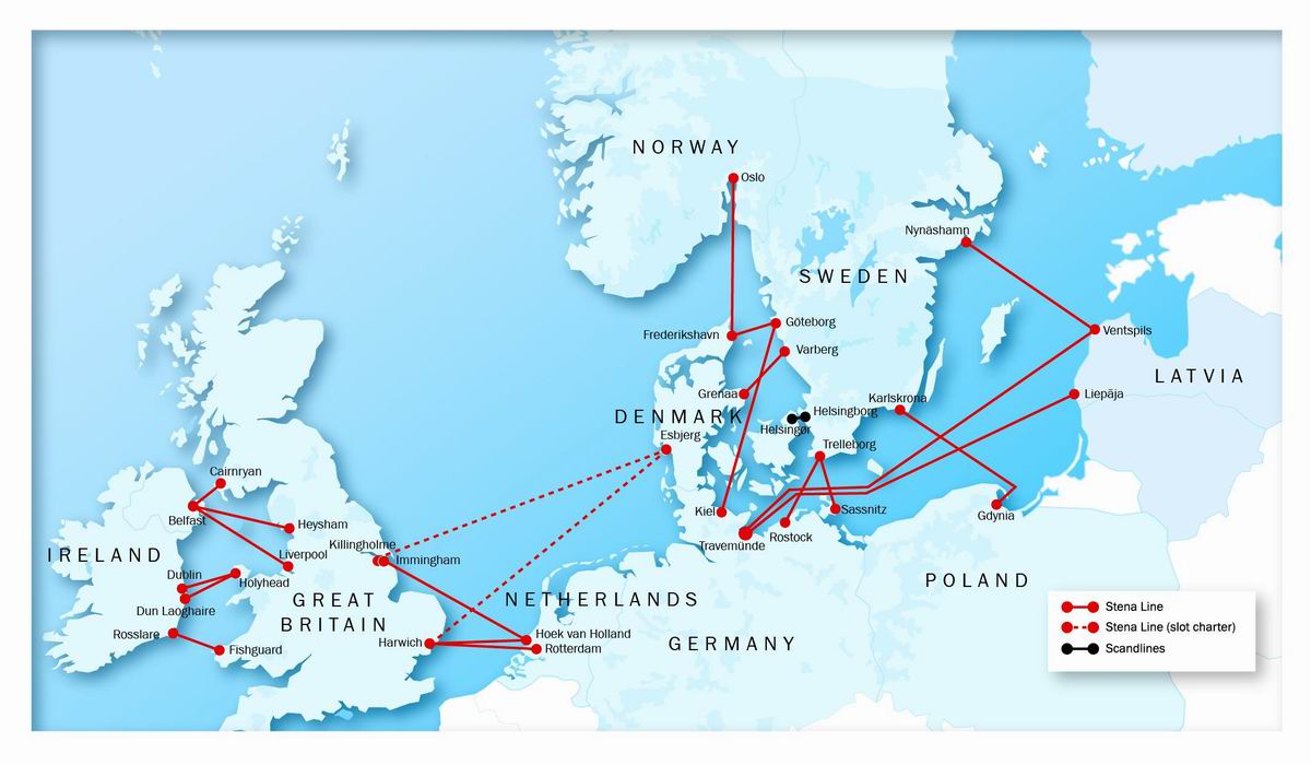 Na mapie - sieć połączeń promowych Stena Line od 11 października 2012 r.