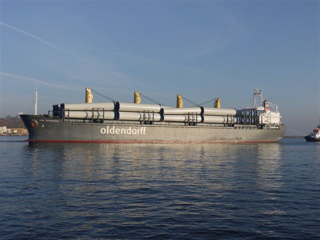 W niedzielę, 18 listopada br., port Gdynia opuścił masowiec Carl Oldendorff (o nośności 32 200 t, zbud. w 2002 w Japonii) po wyładowaniu w BCT kolejnej dużej partii elementów wież turbin wiatrowych z Chin, załadowanej w porcie Jiangyin.
