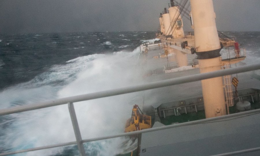 Obecnie masowiec dotarł już szczęśliwie do portu Stramsvik (koło Reykjaviku) na Islandii, gdzie przywiózł z gorącej Brazylii ładunek aluminy. Z Islandii statek popłynie pod balastem do Murmańska, za kołem podbiegunowym. Tam załaduje apatyty, które przywiezie do Kłajpedy. Po drodze spodziewane są kolejne sztormy...