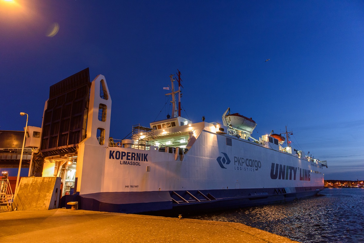 Skład został przetransportowany na pokładzie promu kolejowego Kopernik