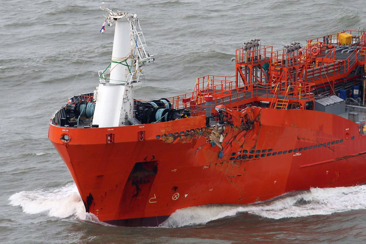 Poniższa animacja wideo przedstawia drogę tankowca przed i po zderzeniu. Statek miał poruszać się z prędkością ponad 12 węzłów. W materiale widać, że niedługo po kolizji na miejscu zjawiła się holenderska jednostka straży przybrzeżnej. Jej załoga przeprowadziła inspekcję zarówno platformy, jak i tankowca, wskazując na znaczne uszkodzenie dziobu statku i konstrukcji nośnej platformy. Po kilkugodzinnym postoju, statek został odprowadzony do portu w Rotterdamie.