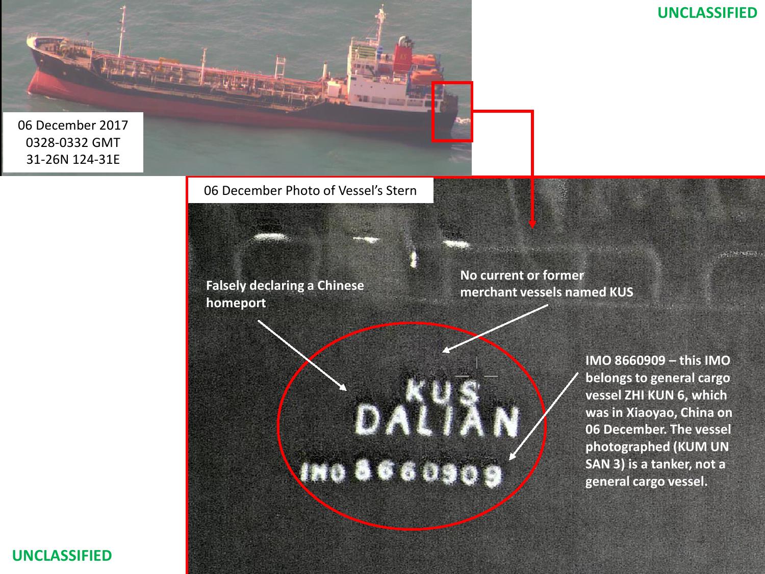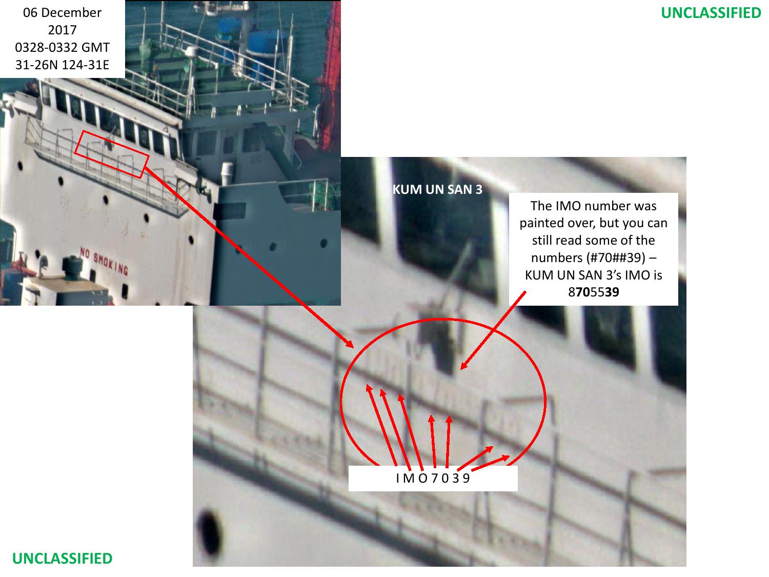 - Kum Gang 3 - państwo bandery: Ludowo-Demokratyczna Republika Korei (Korea Północna); nr IMO 8966535; powiązany z: Korea Unpha Shipping & Trading.