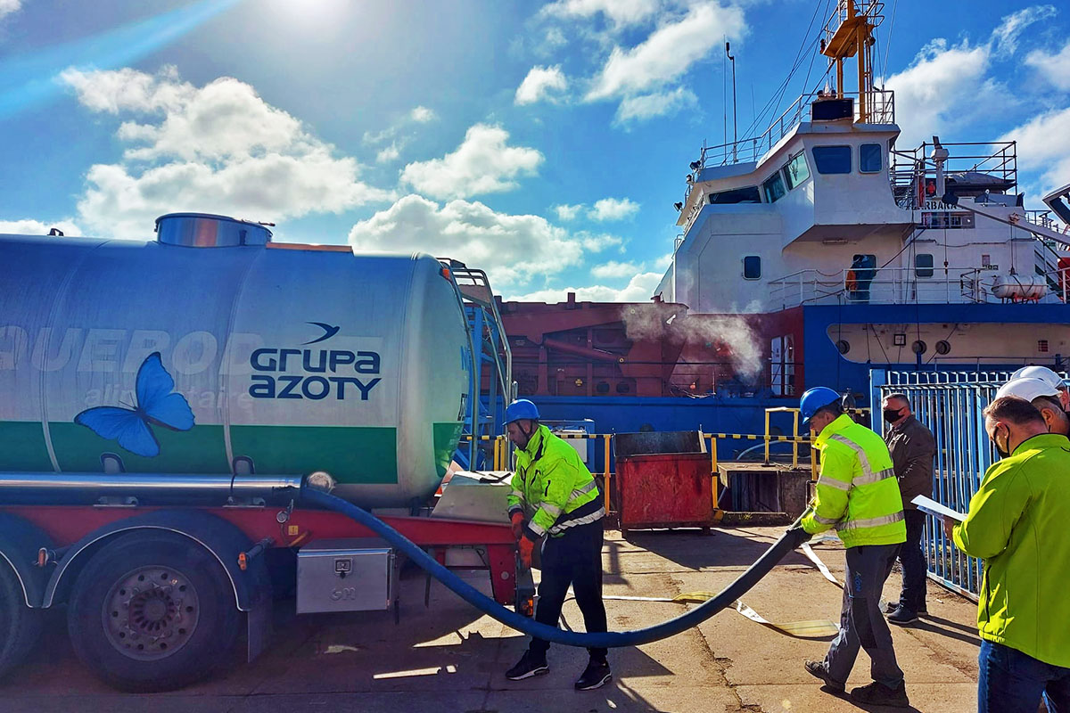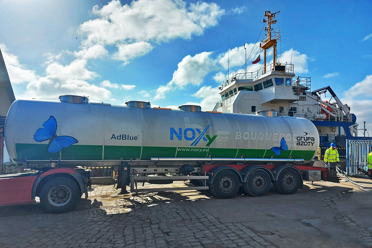 Produkt, używany w procesie selektywej redukcji katalitycznej spalin, dostarczono w łącznej ilości 30 ton dwiema cysternami na statek Barbara (ex Moon Step), który przechodzi remonty przy nabrzeżu Stoczni Południe.