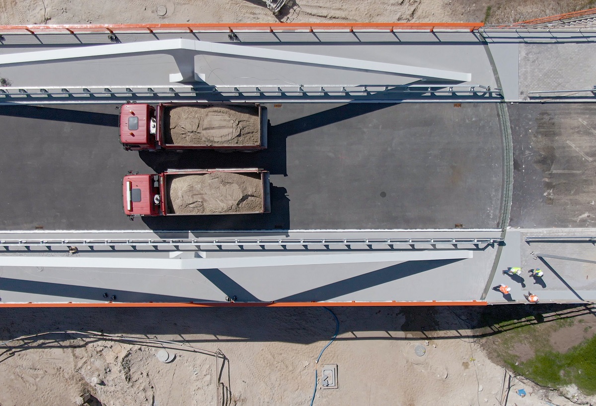 Na moście Południowym odbywają się właśnie próbne obciążenia. Używamy do tego samochodów ciężarowych, czteroosiowych. Liczba i obciążenie tych ciężarówek jest tak dobrana, by zbadać najbardziej niekorzystny układ obciążenia dla mostu, co pozwala przetestować jego pracę, ugięcia oraz odkształcenia – wyjaśnił Paweł Ciomek, kierownik robót mostowych z konsorcjum NDI/Besix, które jest generalnym wykonawcą tej inwestycji.