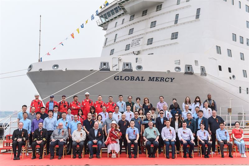 Global Mercy został zbudowany w stoczni Tianjin Xingang w północnych Chinach pod kierownictwem Stena RoRo. Tam też odbyła się ceremonia, która zgodnie z tradycją przyniesie szczęście statkowi i jego załodze, w obecności przedstawicieli Stena RoRo, Mercy Ships i stoczni, a także kilku partnerów.