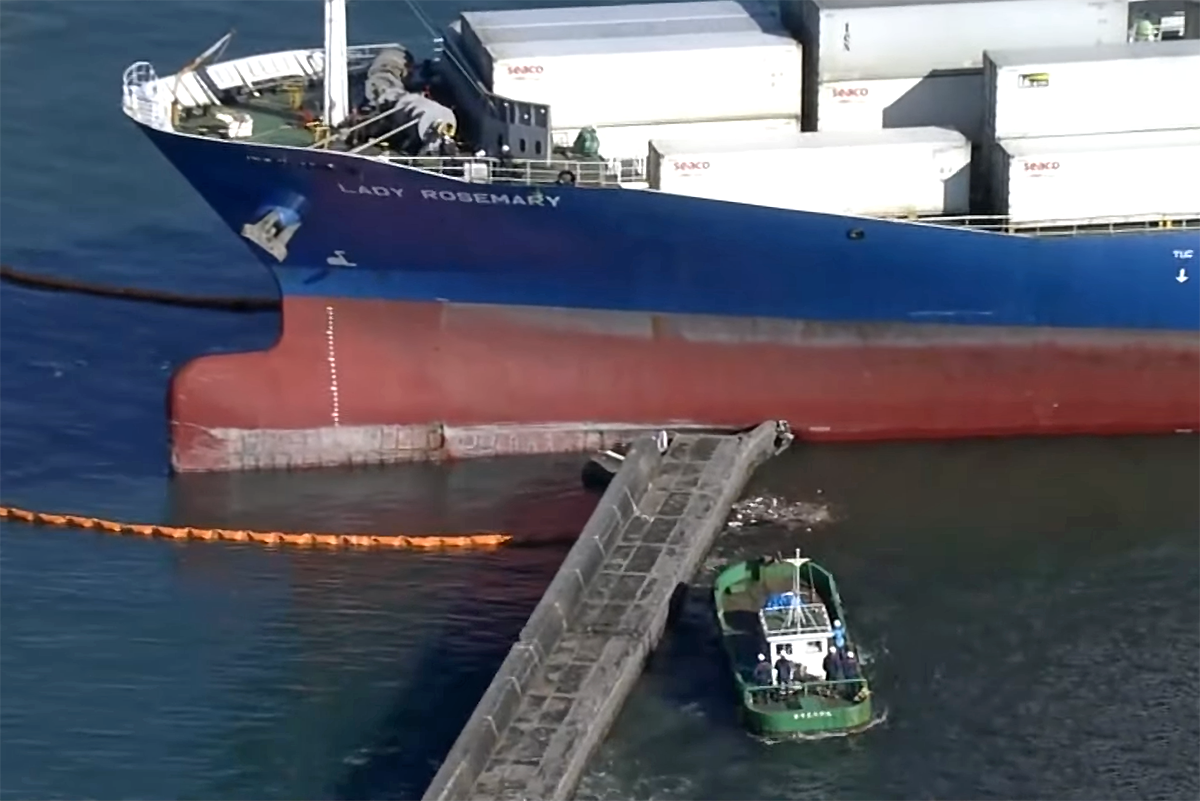 Chłodniowiec Lady Rosemary uszkodził falochron w porcie Hakata w północno-zachodniej części wyspy Kiusiu nad Morzem Japońskim.