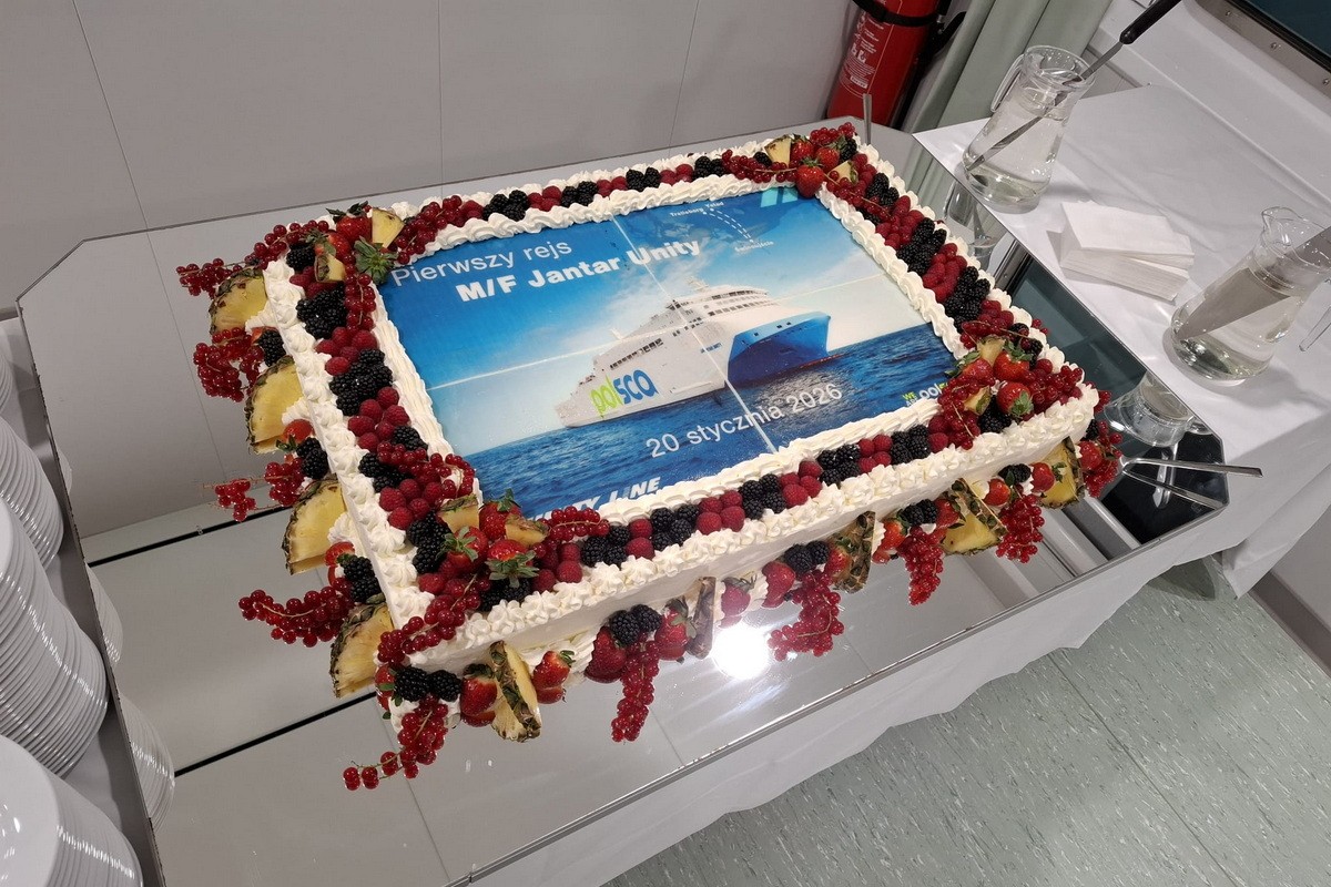 Prom Jantar we wtorek o godz. 20.30 odbił od nabrzeża terminalu w Świnoujściu. Pasażerowie zostali przywitani w wyjątkowy sposób – terminal został udekorowany, a na pokładzie czekał symboliczny tort, inaugurujący pierwszy rejs.