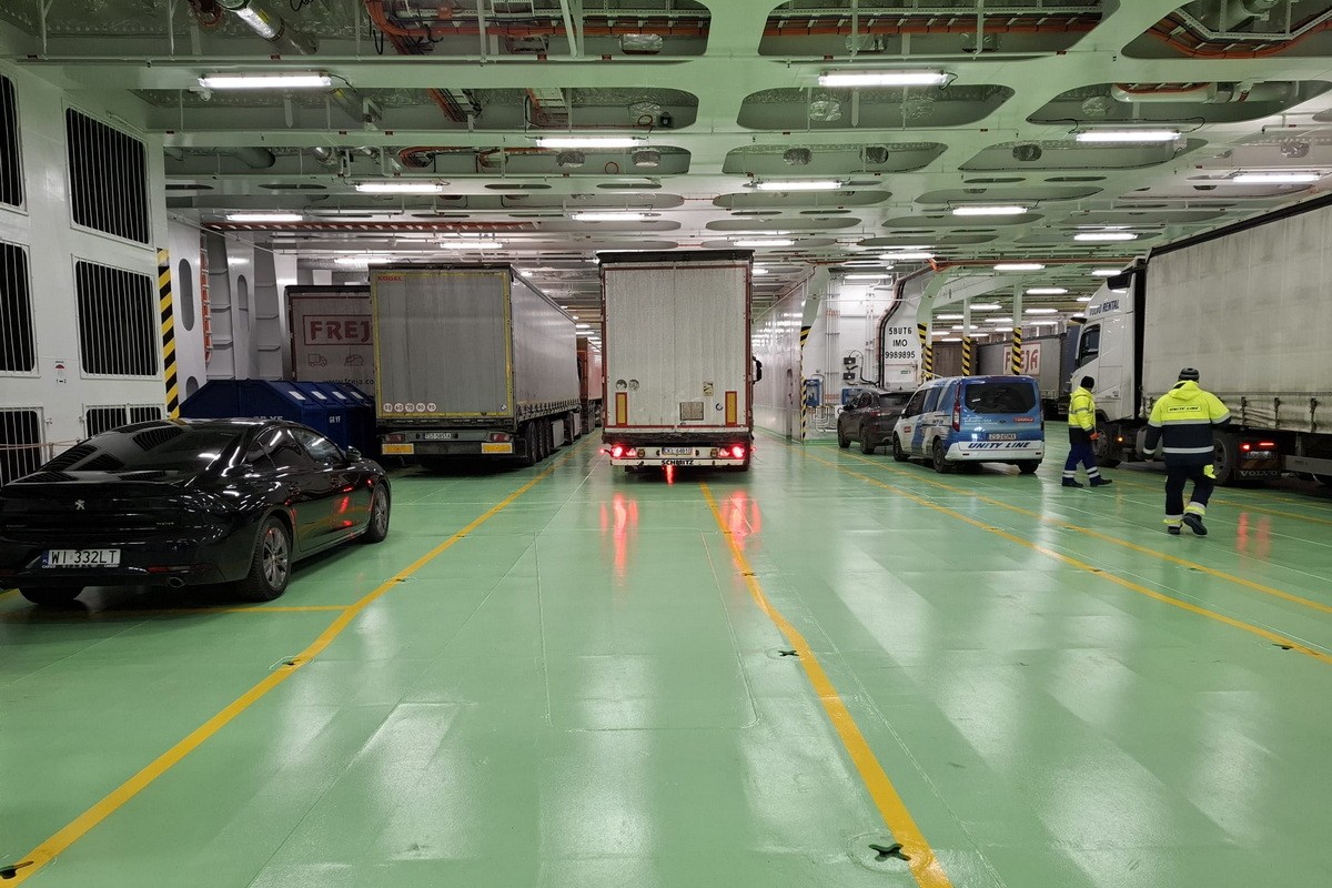 W premierowym rejsie do Trelleborga prom transportuje 158 pojazdów ciężarowych, w tym 12 naczep. Kolację zaserwowano 147 kierowcom TIR i 14 pasażerom, który wjechali na pokład autami osobowymi. Po godzinie 3 w nocy jednostka ma dopłynąć do Szwecji.