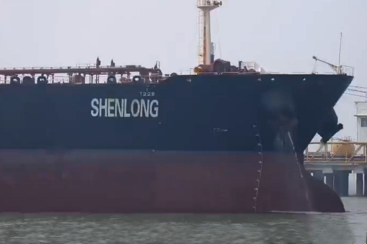 #WATCH | Liberia-flagged tanker ship ‘Shenlong’, captained by an Indian, enters Indian waters near Mumbai Port carrying crude oil loaded from Saudi Arabia’s Ras Tanura port. 🎥: @RajuShinde09 /HT Stay updated with all the stories that matter — download the Hindustan Times app pic.twitter.com/a0cSqU0aBq